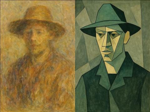 Surreal desert plain; pocket watches replaced by melting ice-cream scoops